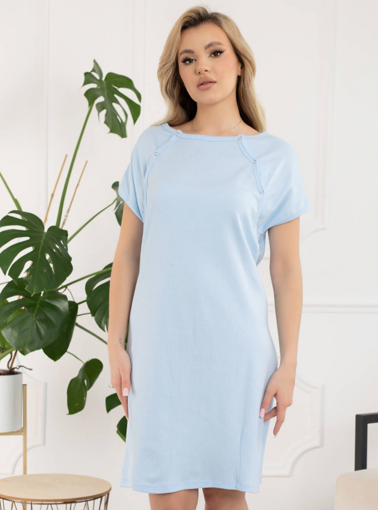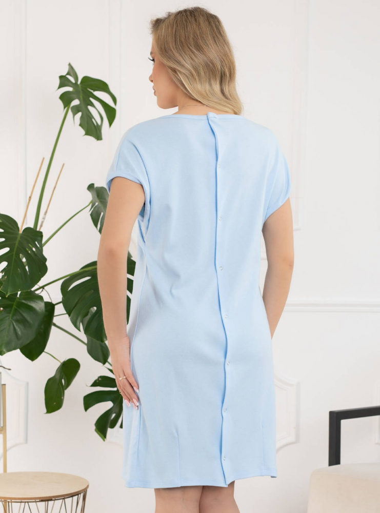 Camasa de alaptat For Mommy, din bumbac, design practic cu capse oblice pe ambele parti frontale si inchidere completa cu capse pe spate, Baki Baby Blue