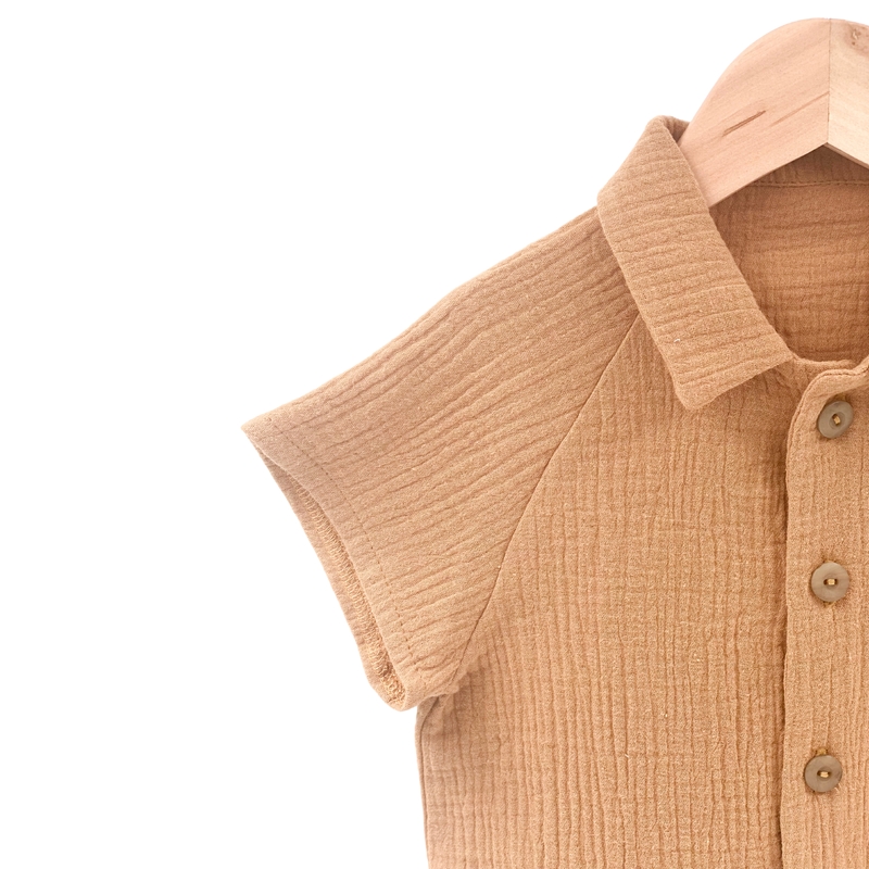 Camasa Too cu nasturi de vara pentru copii din muselina Biscuit 5-6 ani