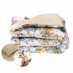 Set pernuta si pilota pentru carucior/landou/patut copii Sensillo Teddy Square Beige cu doua fete bumbac/catifea, Umplutura silicon lyocell antialergic, Perna cu urechiuse, Recomandat de la nastere
