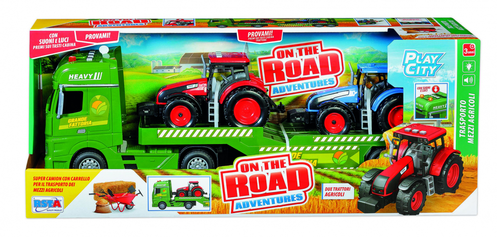 Camion cu frictiune RS Toys transport agricol cu doua tractoare incluse cu sunete si lumini