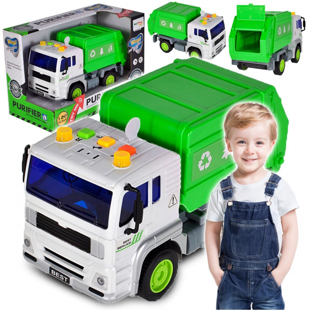 Camion de gunoi cu baterii, Container mobil, Sunete realiste, scala 1:20 si dimensiuni de 18 x 10 x 10 cm, Purifier Truck
