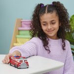 Masina de pompieri din metal adevarat poate gazdui oricare dintre vehiculele patrulei catelusilor din metal adevarat la scara 155 din colectia ta (masinutele suplimentare se vand separat).