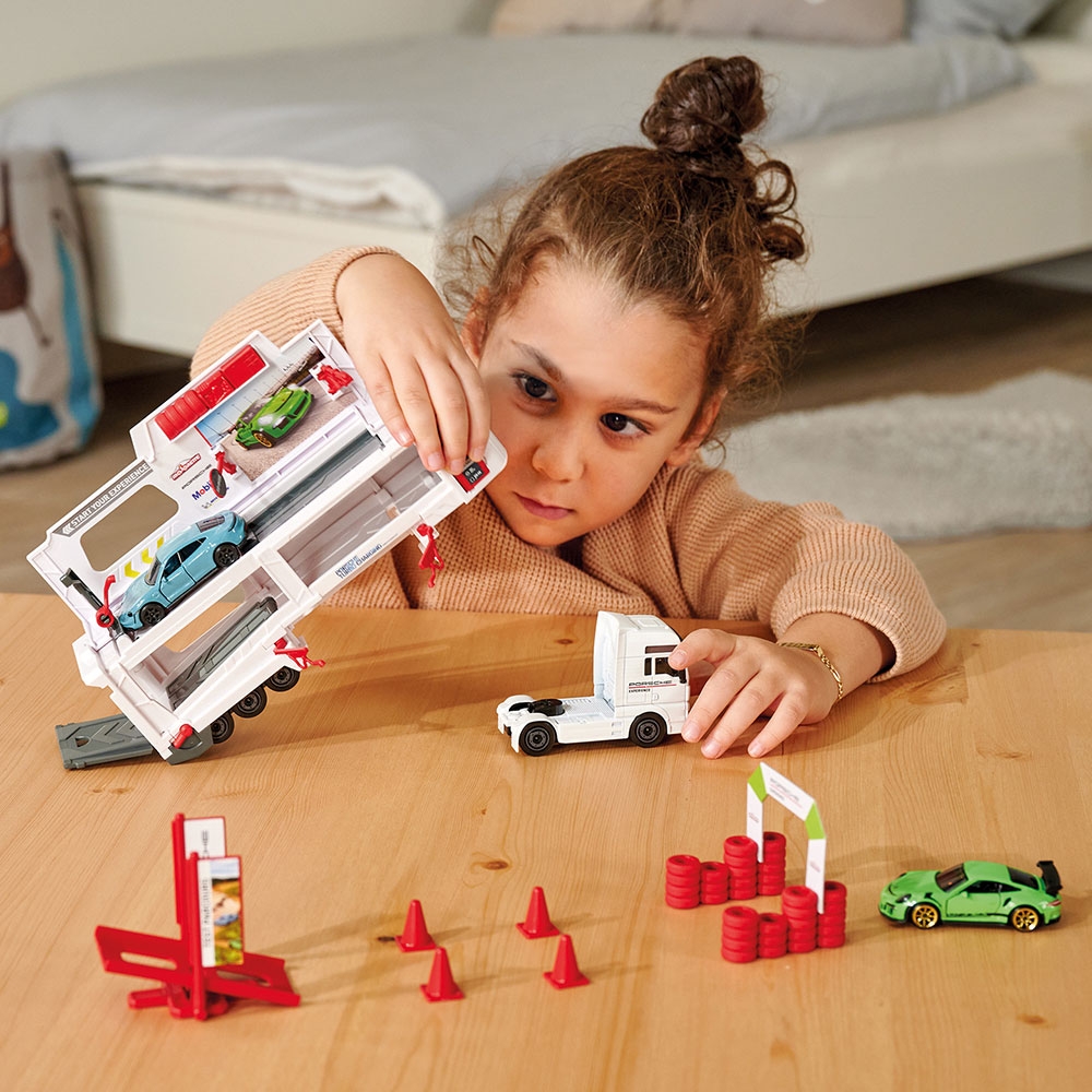 Detalii Camion Majorette MAN Tgx Porsche Experience cu 2 masinute
