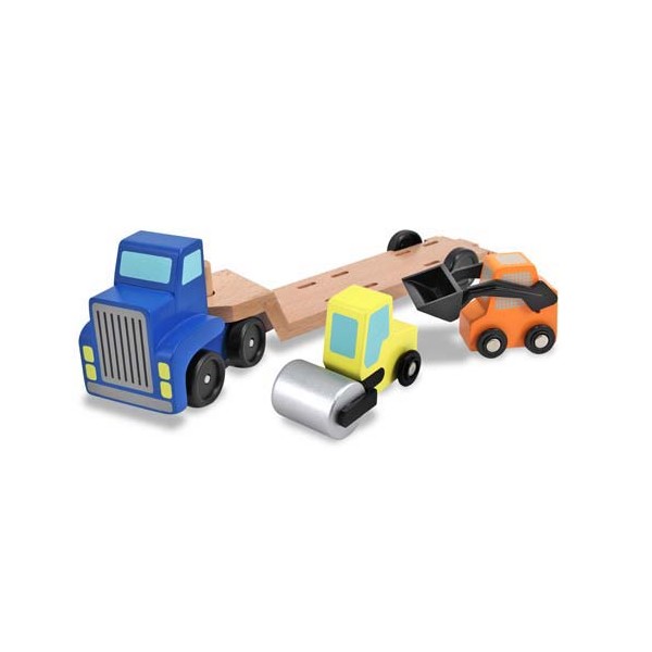Melissa & Doug - Camion transportor cu platforma cu utilaje de constructii