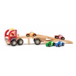 Camion Woodyland din lemn cu 4 masinute de curse