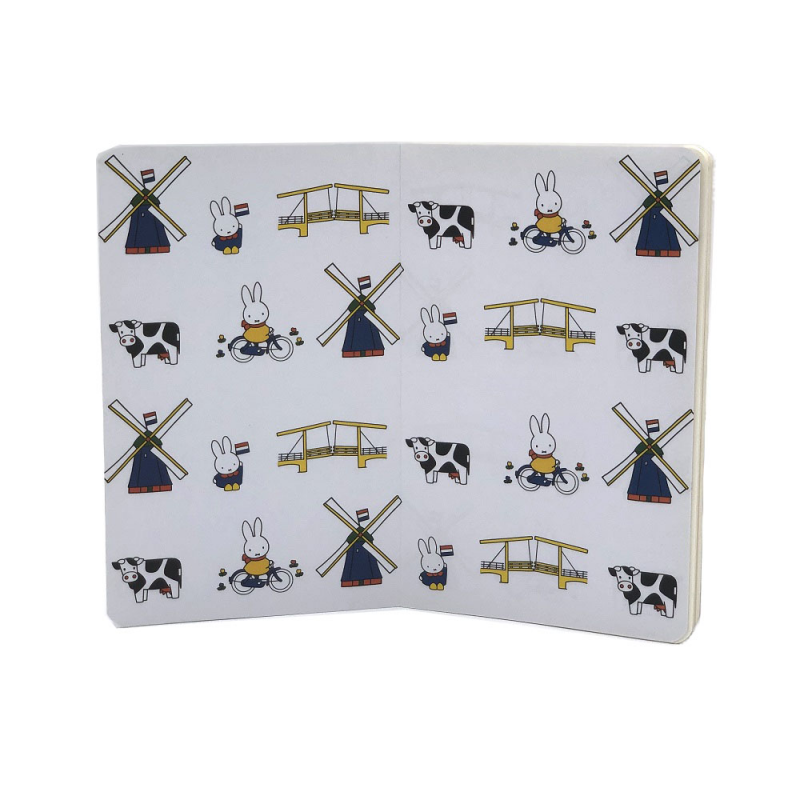 Carnetul de notite Miffy - Holland Dick Bruna are 2 foi la inceput si sfarsit ilustrate cu elemente de pe coperta.