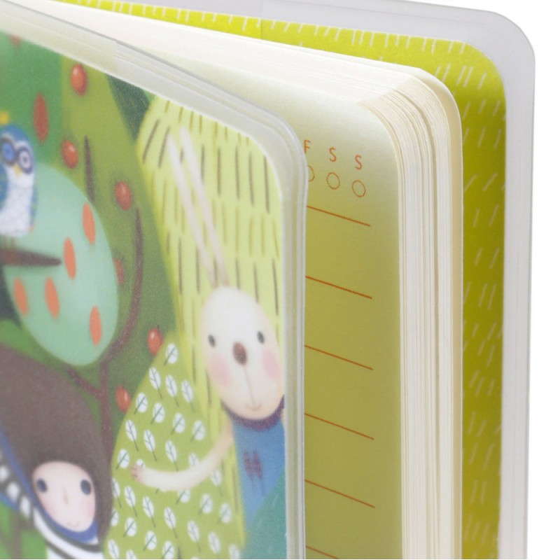 Pentru o protectie mai buna, carnetelul de la Santoro este prevazut cu o coperta suplimentara, transparenta. Contine 120 de pagini personalizate, cu liniatura dictando. Designul Toodle Pip de la Kori Kumi este unul foarte colorat, ilustrand elemente din natura, predominand nuante de verde, maro si rosu.