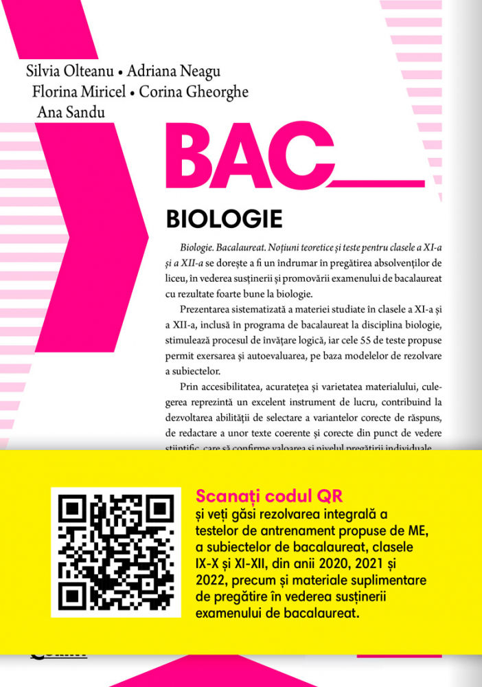 Biologie. Bacalaureat. Noțiuni teoretice și teste pentru clasele a-XI-a și a XII-a este un îndrumar în pregătirea absolvenților de liceu, în vederea susținerii și promovării examenului de bacalaureat .