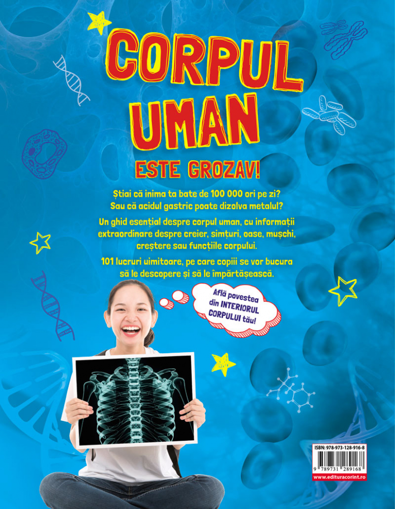 O carte plină de 101 fapte surprinzătoare și extraordinare despre corpul uman, pe care copiii le vor adora și pe care le vor împărtăși cu entuziasm.