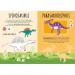 • In interiorul cartii veti descoperi: pagini de colorat cu cei mai indragiti dinozauri, pentru a stimula creativitatea si expresivitatea artistica, labirinturi ingenioase, menite sa dezvolte gandirea logica si orientarea in spatiu, zeci de abtibilduri reutilizabile, perfecte pentru jocuri interactive si activitati de asociere si multe informatii amuzante si interesante despre viata dinozaurilor, adaptate varstei celor mici