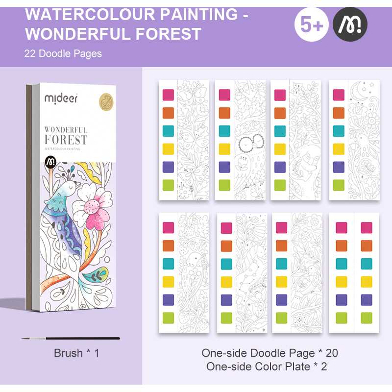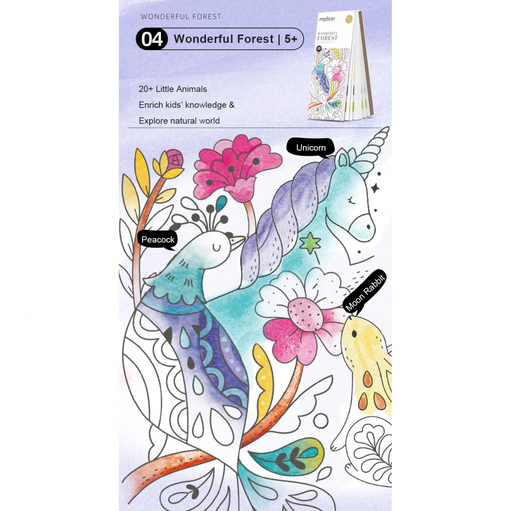Carte de colorat cu apa Mideer pensula de pictat si culori incluse 19 x 8 x 1.3 cm Wonderful Forest