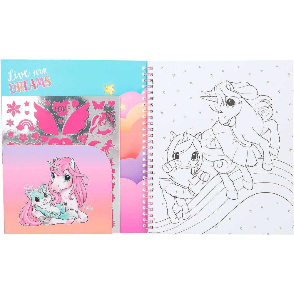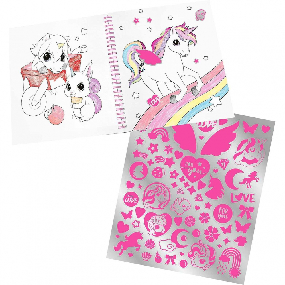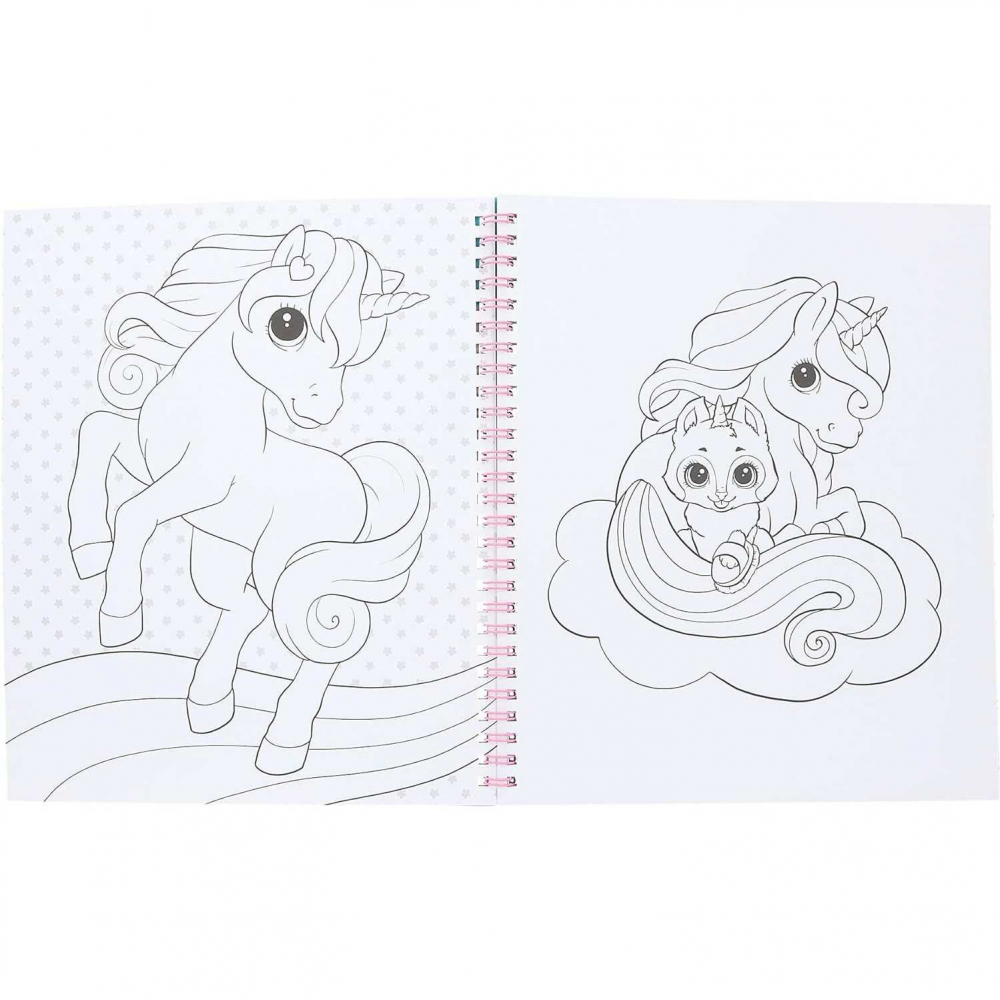 Cu cartea de colorat TOPModel, fetele pot proiecta motive dragute cu unicorni si pot lasa imaginatia sa zboare.