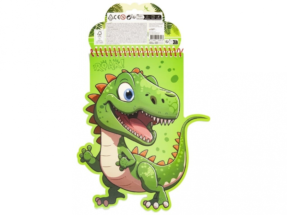 Carte de colorat in forma de animal cu abtibilduri si markere dinozaur