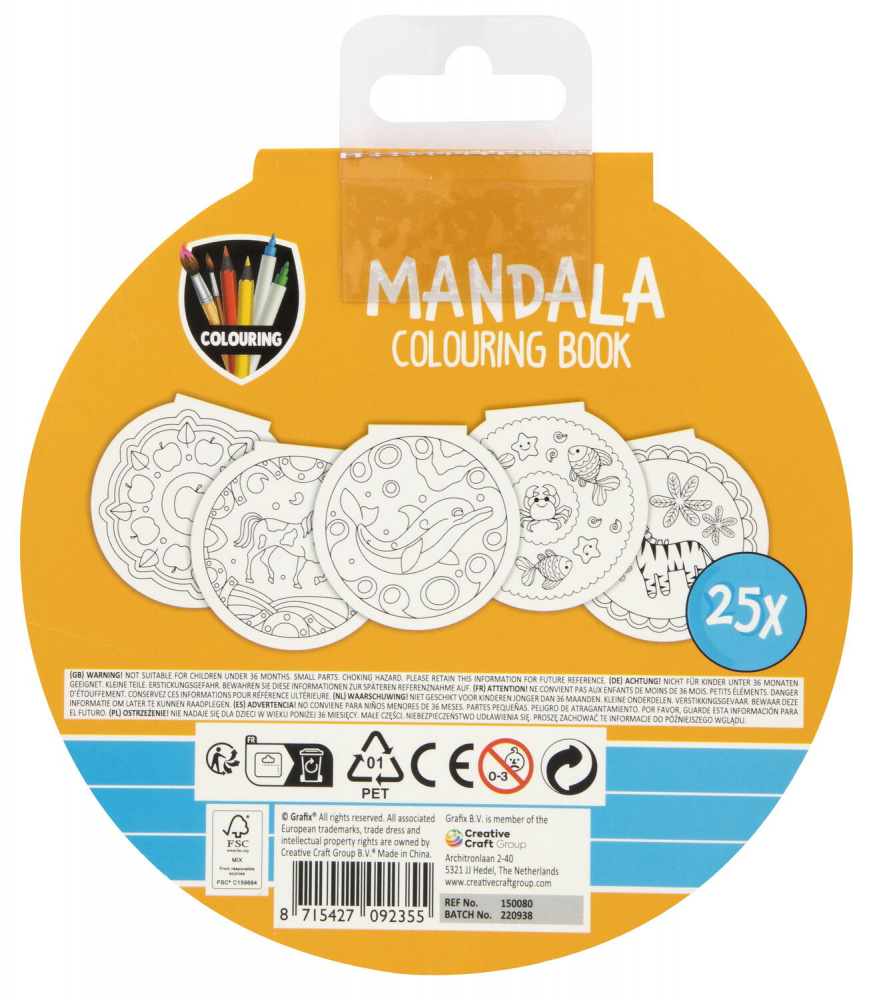 - cartea de colorat contine 25 file cu desene mandala pentru copii, cu diferite grade de dificultate