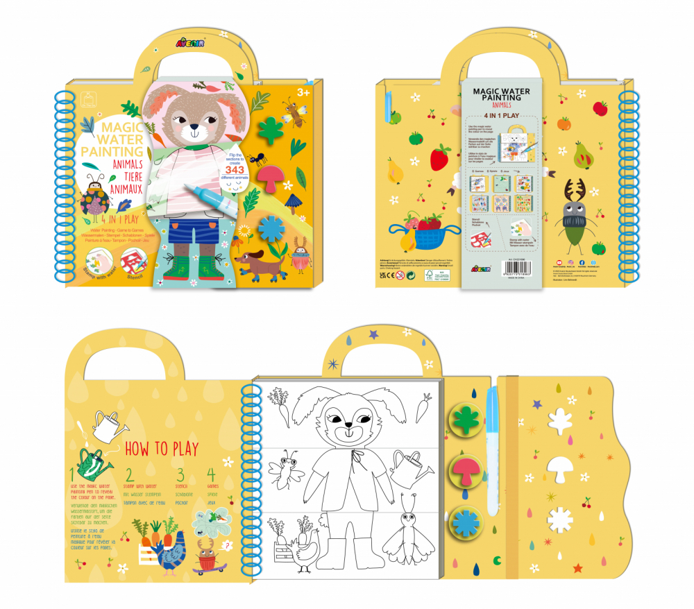 Carte de pictat cu apa sabloane stampile si jocuri portabila Animale