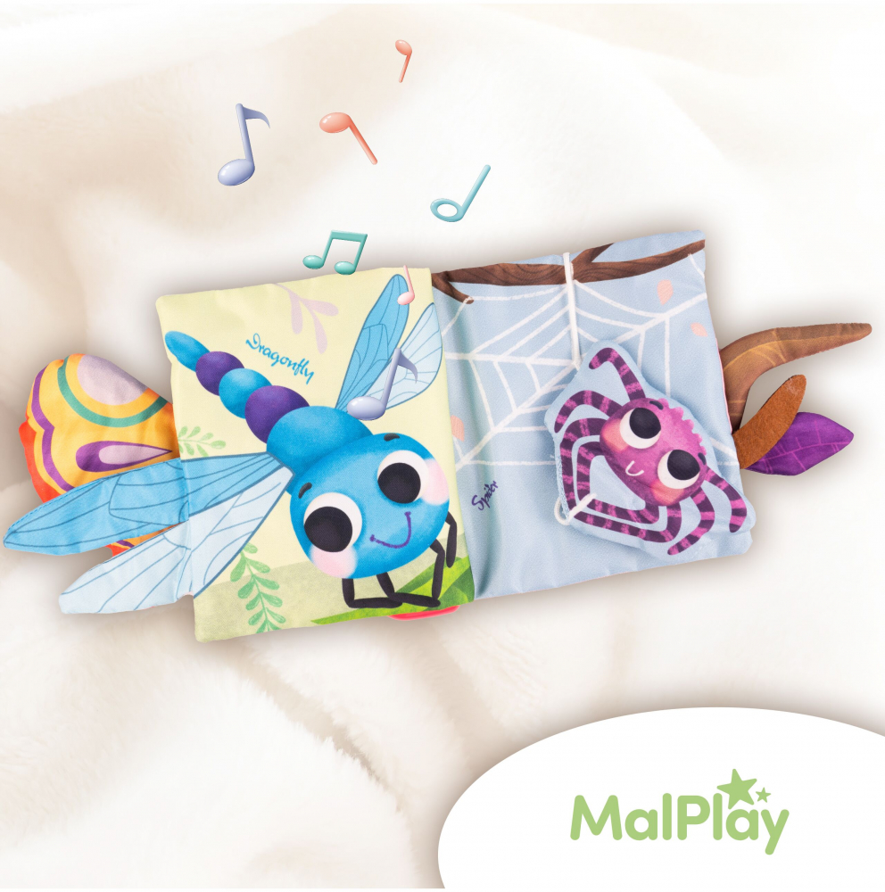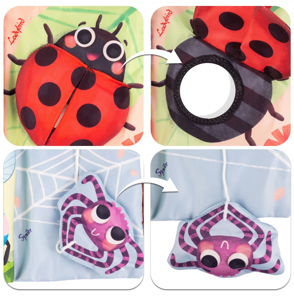 Pe lateral este agatat un maner cu margele colorate. Datorită lor, copilul învață culorile și texturile.