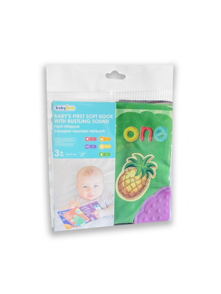 - cartea este prevazuta cu 3 pagini care fosnesc si viu colorate cu diferite personaje si animale. In coltul primei pagini se afla o jucarie de dentitie ce ajuta copilul la calmarea gingiilor.