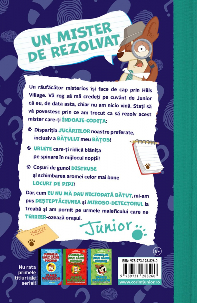 Un răufăcător misterios își face de cap prin Hills Village. Vă rog să mă credeți pe cuvânt de Junior că eu, de data asta, chiar nu am nicio vină. Stați să vă povestesc prin ce am trecut ca să rezolv acest mister care-ți ÎNDOAIE-CODIȚA: