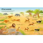 Această carte cu stickere îi poartă pe copii din jungla tropicală până în adâncul mării, trecând prin deșerturi, păduri și munți, dezvăluind pe parcurs animale sălbatice mari și mici.