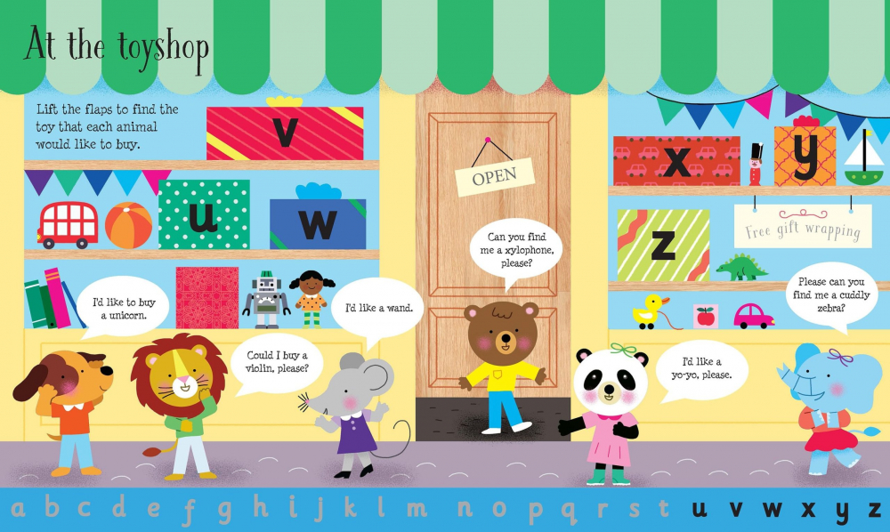Copiii pot asocia sunete și litere la fermă, pot ghici sunetele literelor pentru animalele de la grădina zoologică, pot găsi jucării în magazinul de jucării și multe altele.