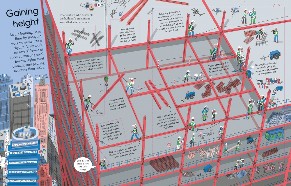 Ridicați clapele pentru a vedea echipele de constructori săpând, forând, turnând, ridicând și ridicând în timp ce construiesc o clădire nouă în inima unui oraș aglomerat.