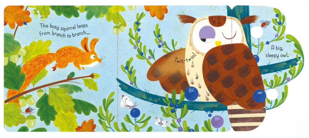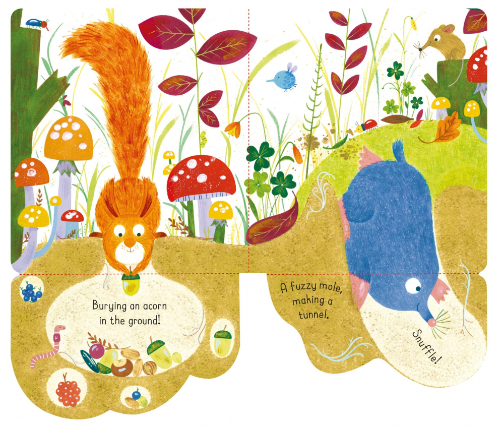 Această carte fermecătoare pentru cei mici are multe de descoperit și de povestit la fiecare pagină, de la o bufniță somnoroasă în vârful copacilor la o turmă de căprioare între copaci și o cârtiță care sapă sub pământ.