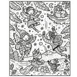O carte cu scene de iarnă, de la unicorni care patinează pe gheață la castele de zăpadă, aurore boreale și alte imagini fantastice.