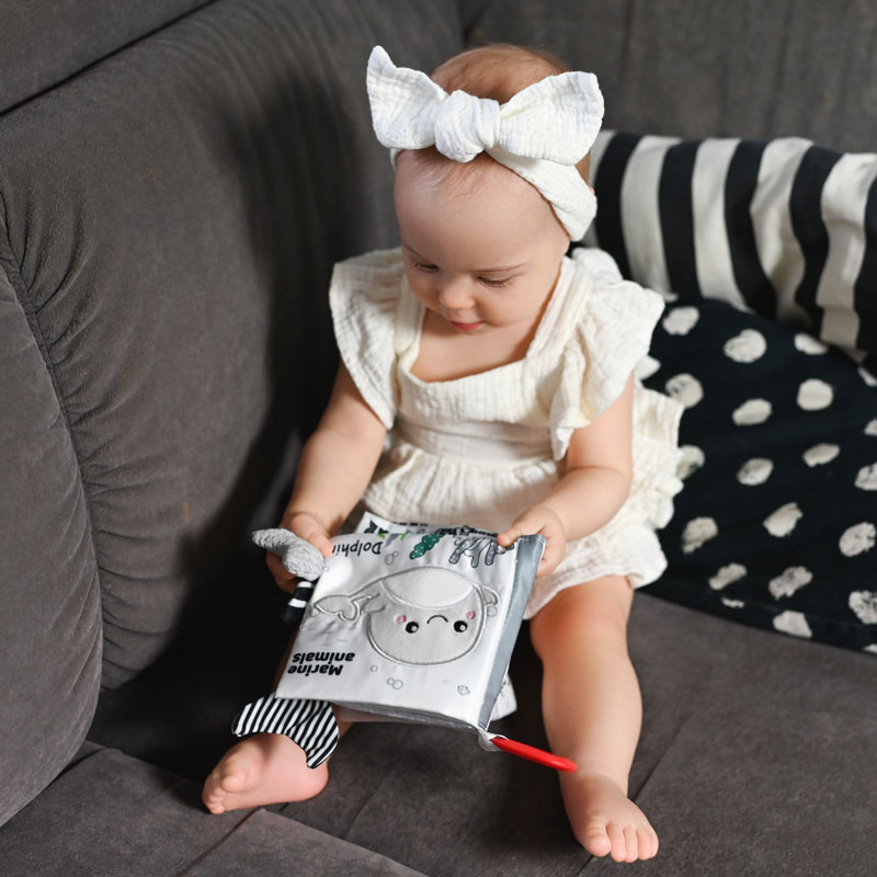 Cartea senzoriala cu contrast ridicat, Animalele Marine, este o jucarie excelenta pentru copiii mici care abia invata sa exploreze lumea.Este plina de surprize care il vor captiva pe micutul tau.