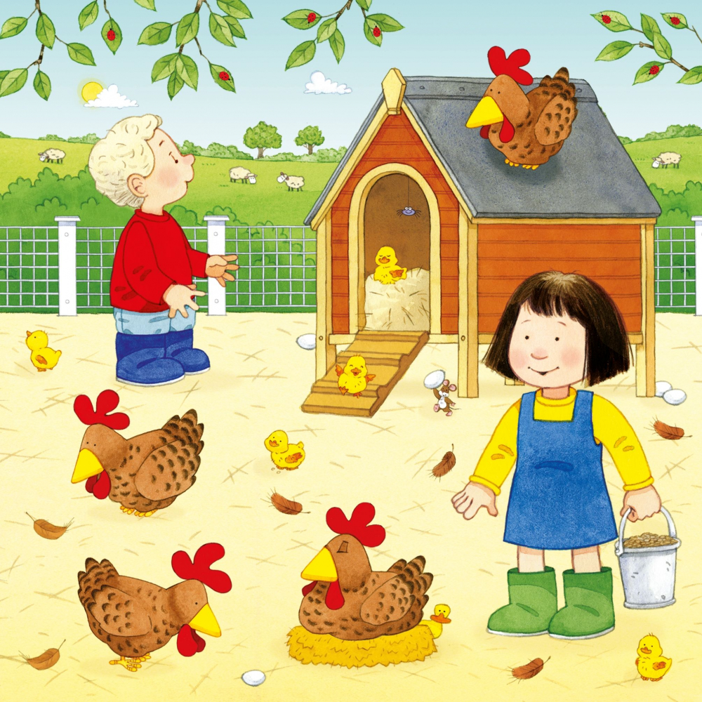 Micuții pot completa puzzle-ul simplu de 9 piese, pentru a recrea trei scene din Ferma Pomilor și se pot bucura de cartea de povești cu ilustrațiile încântătoare.