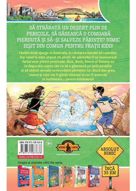 Citind acest al șaptelea volum al seriei Vânătorii de comori, copii pot afla și o mulțime de lucruri interesante despre peisajele Australiei, despre animalele care trăiesc acolo, precum și despre istoria continentului.