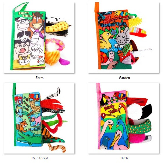 Carticelele sunt facute din panza si sunt pline de desene puternic colorate.