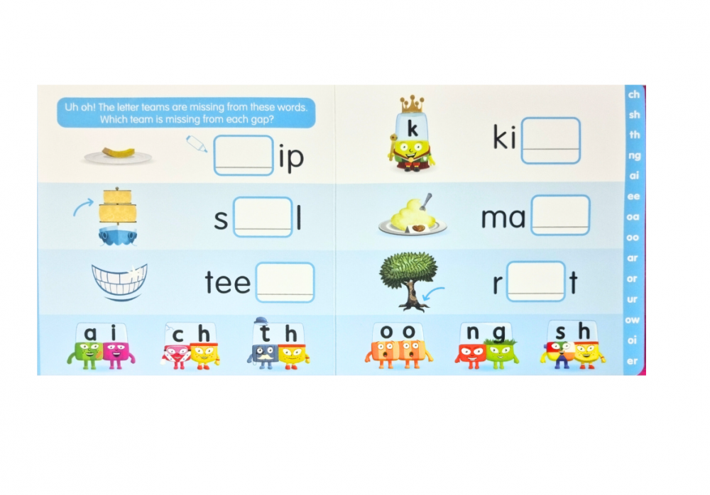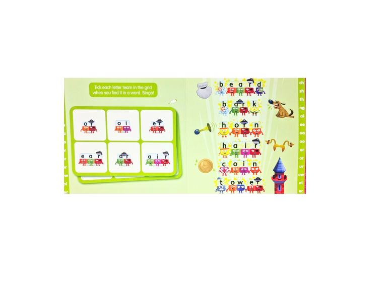 - copiii pot exersa citirea si scrierea cuvintelor prietenoase cu fonetica din nou si din nou cu aceasta carte de activitati