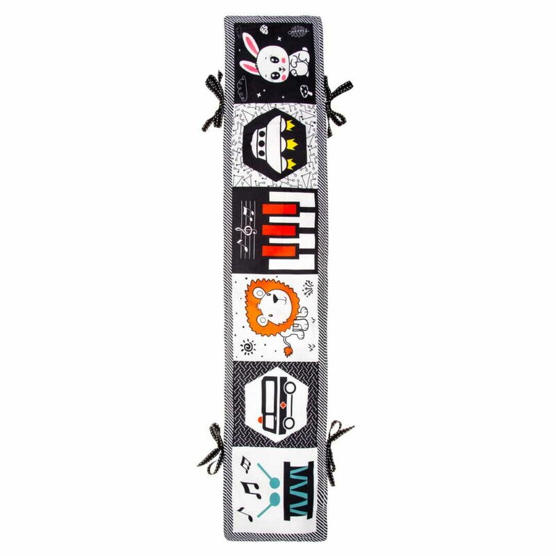 Designul cu imagini contrastante ajuta la stimularea vizuala a copilului si la dezvoltarea abilitatilor sale cognitive intr-un mod distractiv.