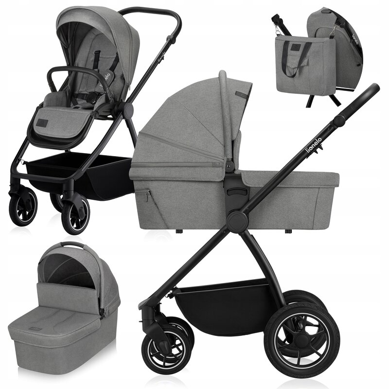 Carucior 2 in 1 Lionelo Meril, cu landou si scaun cu dimensiune XL, reversibil, sistem de ventilatie 3D, accesorii, pana la 22 kg, vonform cu EN1888-1 EN1888-2, EN1466, Gri
