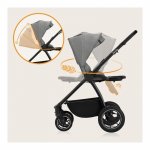 Scaunul caruciorului, cu spatar reglabil, poate fi montat atat cu fata, cat si cu spatele catre directia de mers.