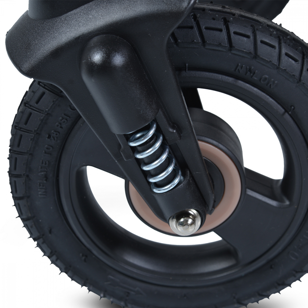 | Caracteristici: | Spatar reglabil Bara protectie detasabila Suspensii Roti cu blocare directie |