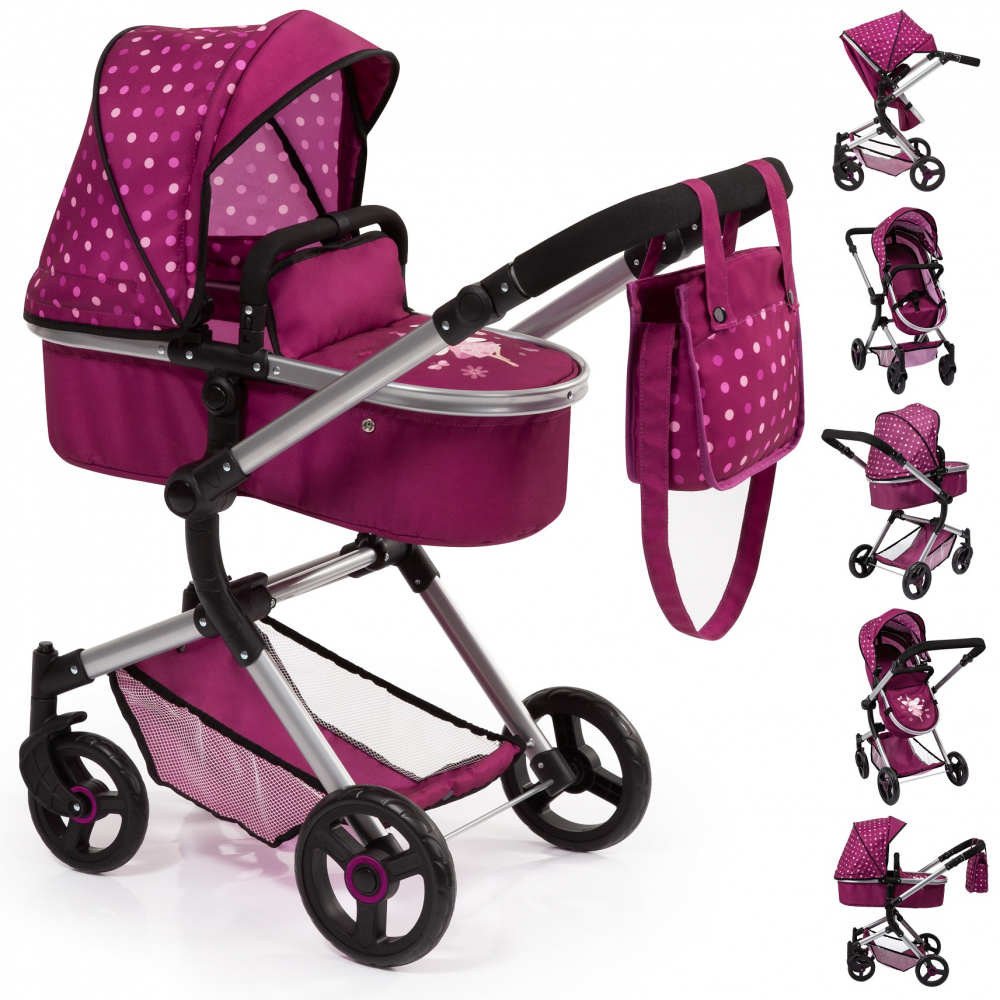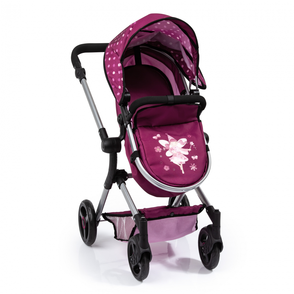 Carucior 2in1 pliabil pentru papusi Neo Vario cu gentuta inclusa Bordo Fairy