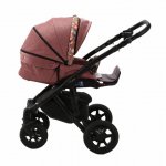 Carucior 3 in 1 Adamex Barletta FL2 Flowers Collection rosewood cu scaun auto iSize, landou cu suport de cap reglabil pe inaltime, parte sport reglabila pana la orizontala, suspensii