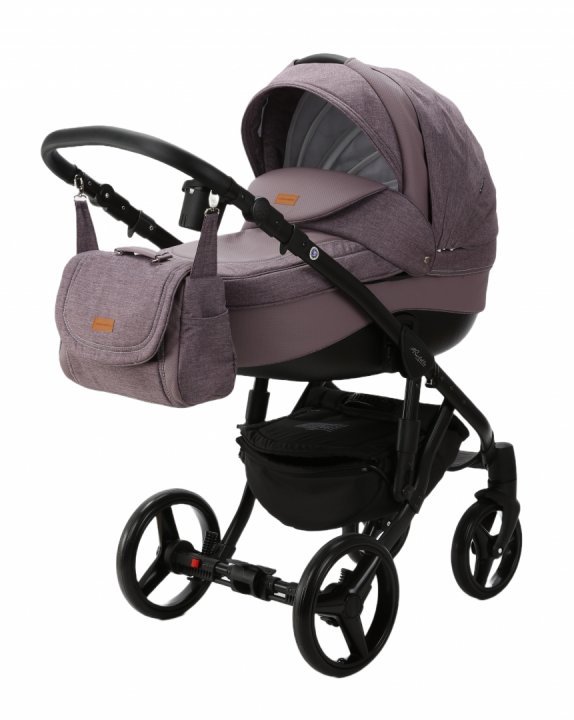 Carucior 3 in 1 Adamex Barletta Linen/Ecoleather CR224 Violet Tyrian, cu copertina reglabila, manere de transport, spatar reglabil, omologat R129