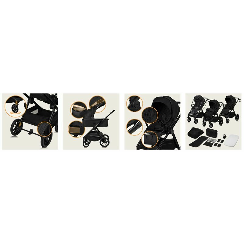 Carucior 3 in 1 Lionelo Layla Sarcina maxima 22 kg, Cadru aluminiu, Cu landou intarit si salteluta din spuma AirDots, Reversibil, Cu ventilatie 3D, Cu accesorii, Standard de siguranta EN1888-1 negru