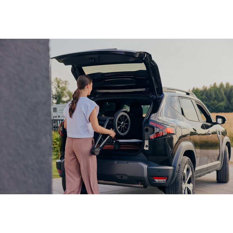 Rotile mari din cauciuc all-terrain (diametru de 29 cm si 20 cm) au un profil adanc si o suspensie avansata pentru a asigura o plimbare lina si confortabila, chiar si pe terenuri dificile si denivelate.