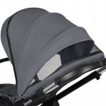 Fereastra de plasa generoasa din capotina si landou ofera ventilatie suplimentara, usor de reglat cu magneti ascunsi discret.