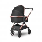 Carucior 3 in 1 pentru copii Lorelli Reya Negru Jasper cu maner reversibil, cadru din aluminiu, suspensii, maner pentru transport, greutate admisa 22 kg
