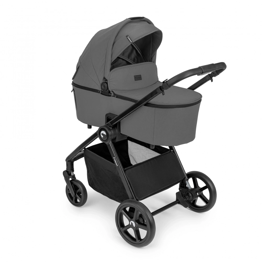 Carucior 4 in 1 pentru copii Kidnort Alskar dark gray, cu landou, scaun, baza isofix, pliabil, capotina extensibila, spatar ajustabil si suport pentru picioare reglabil, 0 Luni+ / 22kg
