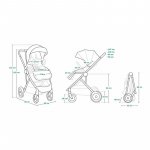 Caruciorul detine un scaun orientat spre cu fata sau cu spatele si cu un sistem usor de pliere de dimensiuni compacte.