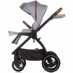 Carucior Chipolino Prestige 3 in 1 cloud grey cu suspensii, cadru din aluminiu, rucsac, husa picioare, greutate admisa 22 kg
