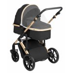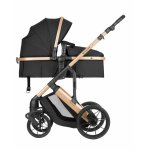 Carucior copii transformabil 3in1 KikkaBoo Darling Black 2024,reversibil,cadru din aluminiu,roti cu suspensii,maner parinte reglabil,scaun auto i-Size,geanta,suport pahar,husa picioare,plasa insecte