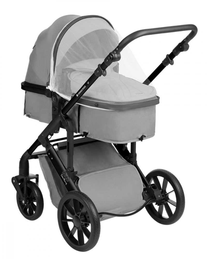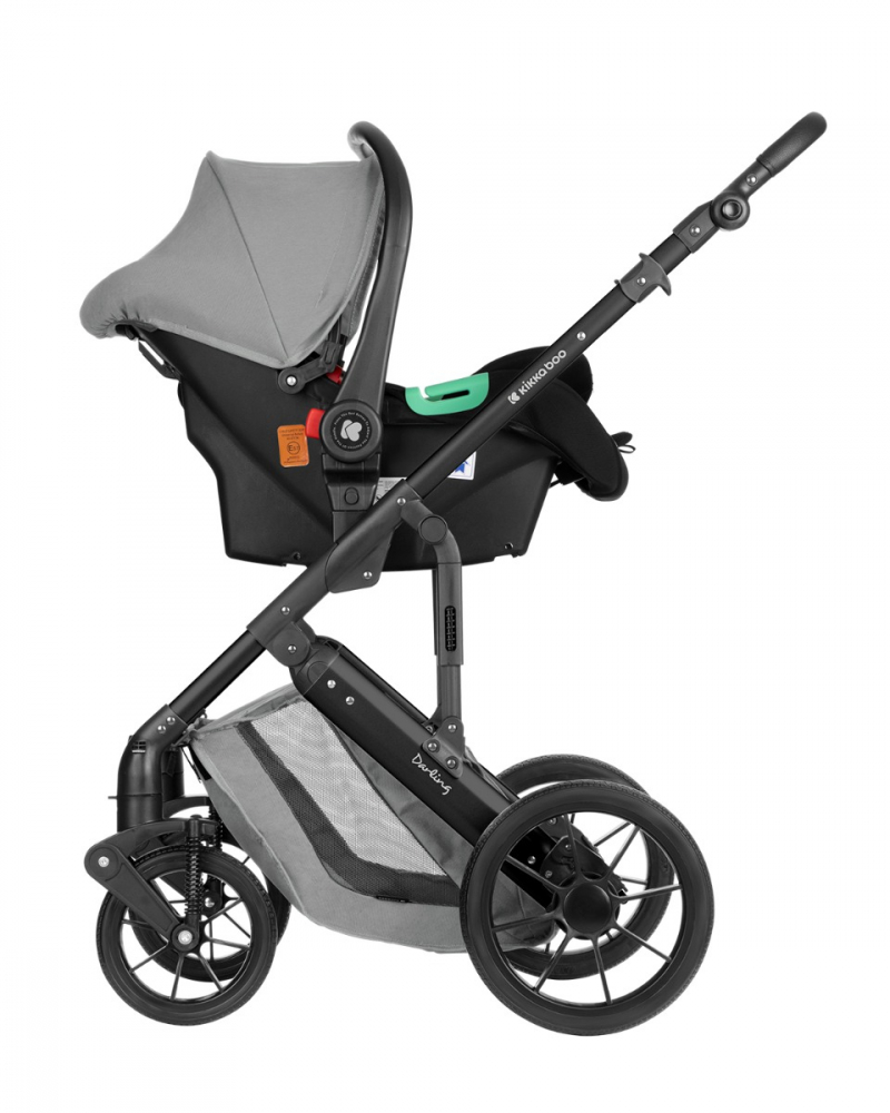 Carucior copii transformabil 3in1 KikkaBoo Darling LightGrey 2024,reversibil,cadru din aluminiu,roti cu suspensii,maner parinte reglabil,scaun auto i-Size,geanta,suport pahar,husa picioare,plasa insecte