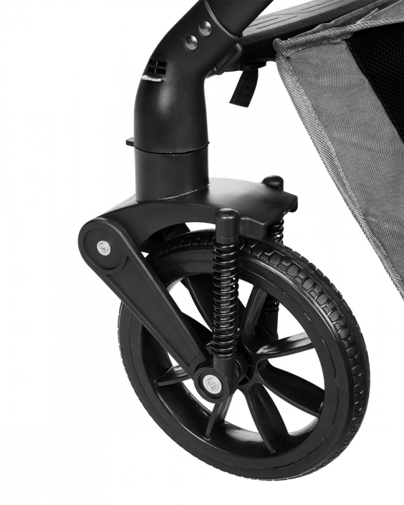 - Cadrul se pliaza tip carte pentru a ocupa cat mai putin spatiu iar suspensiile incorporate faciliteaza plimbarile pe suprafete accidentate.