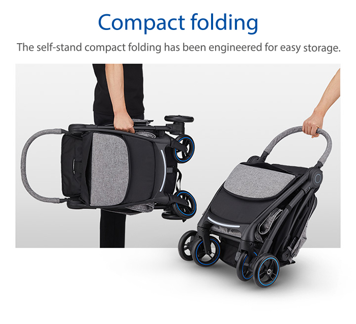 - Pliere usoara si sistem de sine statator ce face caruciorul usor de depozitat si transportat.